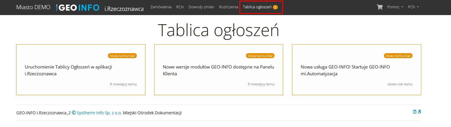 Miło nam poinformować, że wraz z uruchomieniem nowej wersji aplikacji GEO-INFO i.Rzeczoznawca do Państwa dyspozycji udostępniamy Tablicę Ogłoszeń.