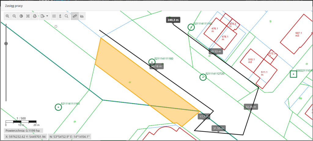 - eksport geometrii zarejestrowanej Pracy geodezyjnej do pliku w formacie DXF i GML